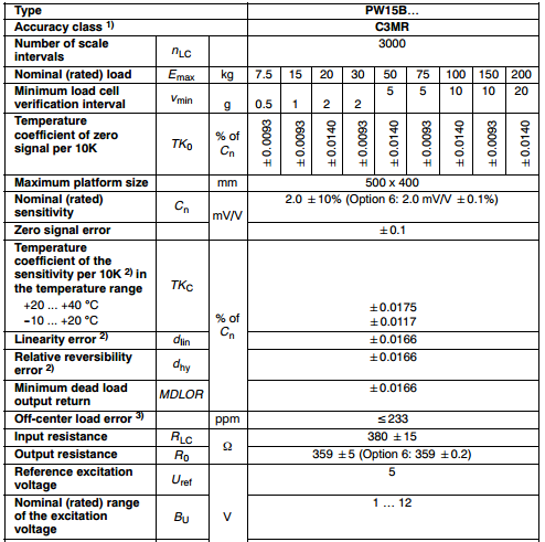 五、PW15BC3稱重傳感器技術參數(shù)