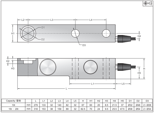 稱重傳感器相關(guān)型號: SB-10T, SB-15T, SB-20T