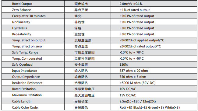 美國傳力 SB-10T稱重傳感器技術(shù)數(shù)據(jù)