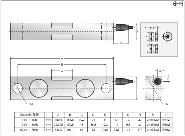 DBS-75KLB傳感器,美國傳力 DBS-75KLB 稱重傳感器