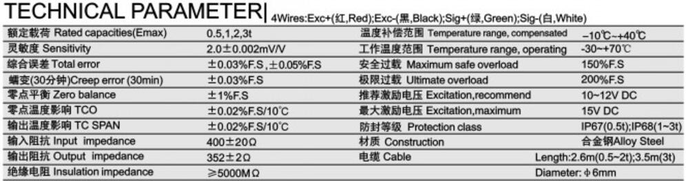 柯力SBJ系列稱重傳感器技術(shù)參數(shù)