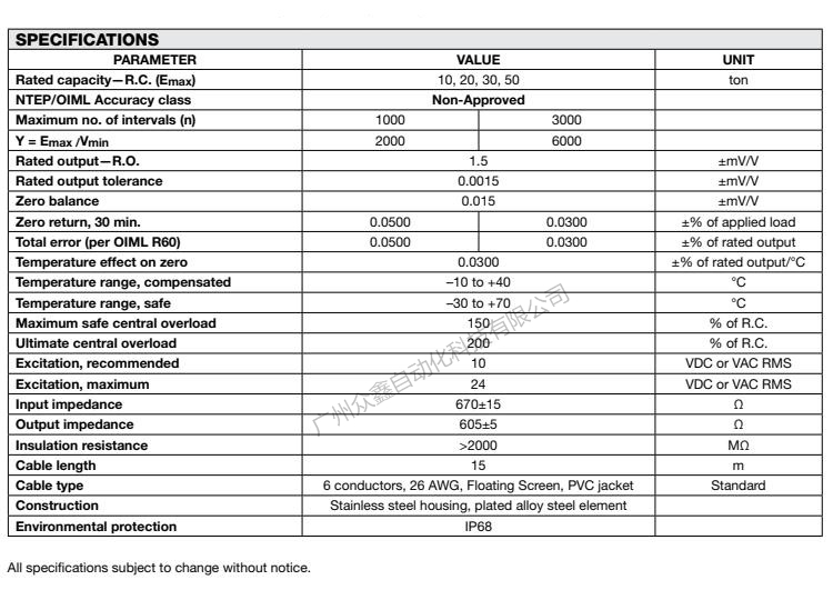 二、美國(guó)特迪亞 121-50T稱重傳感器可選量程