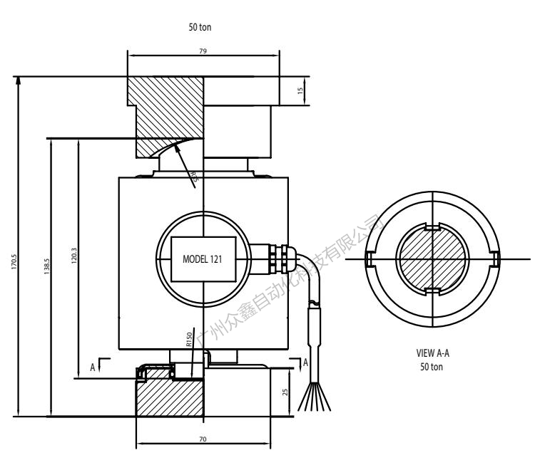 四、美國(guó)特迪亞 121-50T稱重傳感器產(chǎn)品尺寸