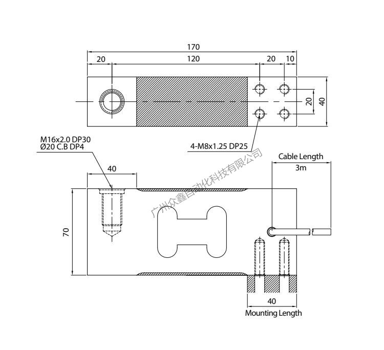 四、韓國(guó)凱士CAS品牌 BC-500P稱重傳感器產(chǎn)品尺寸