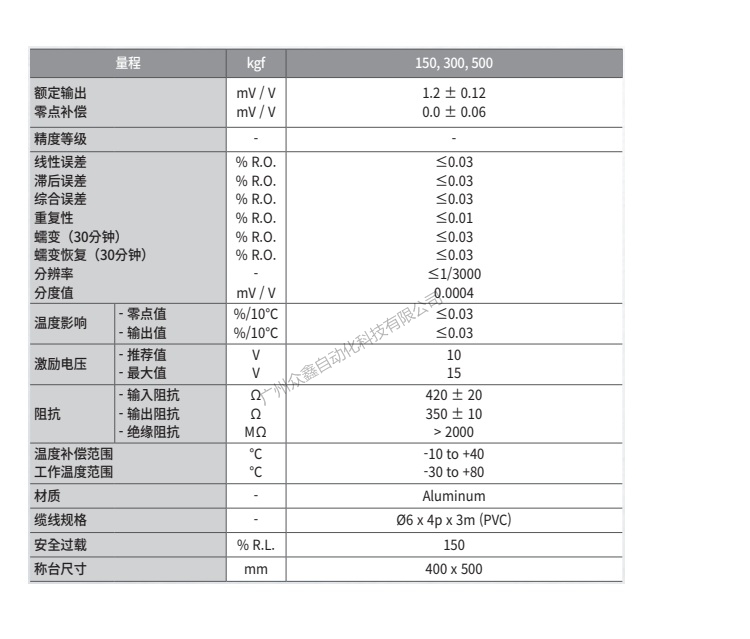 五、韓國(guó)凱士CAS品牌 BC-500P稱重傳感器技術(shù)參數(shù)