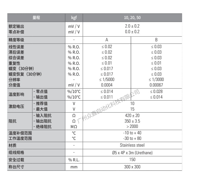 五、韓國凱士CAS品牌 BCEP-50L-EXP稱重傳感器技術(shù)參數(shù)