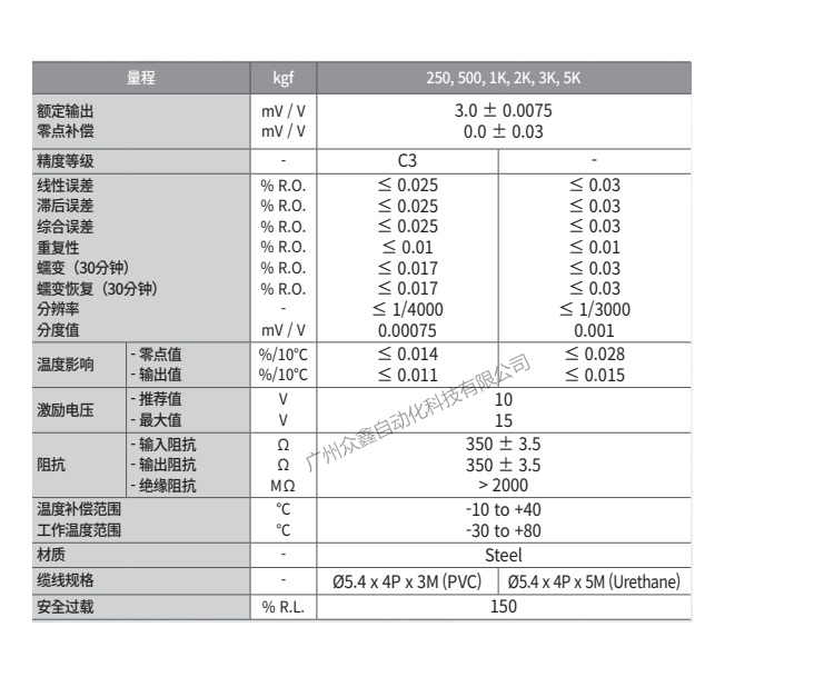 五、韓國(guó)凱士 BSA-5t稱重傳感器技術(shù)參數(shù)