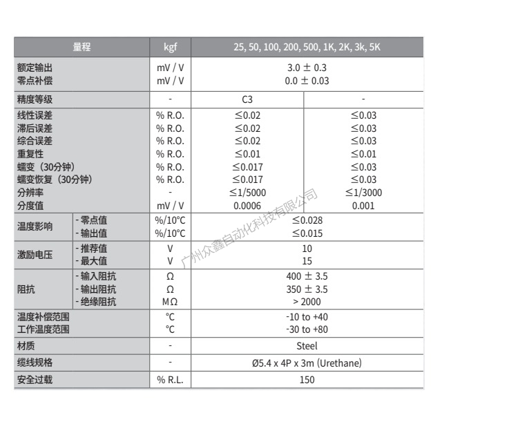 五、韓國(guó)凱士CAS品牌 SBA-5T稱(chēng)重傳感器技術(shù)參數(shù)