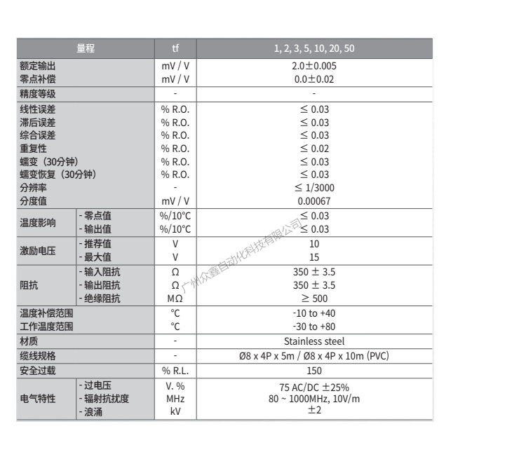 五、韓國凱士CAS品牌 LSS-50T-NR稱重傳感器技術(shù)參數(shù)