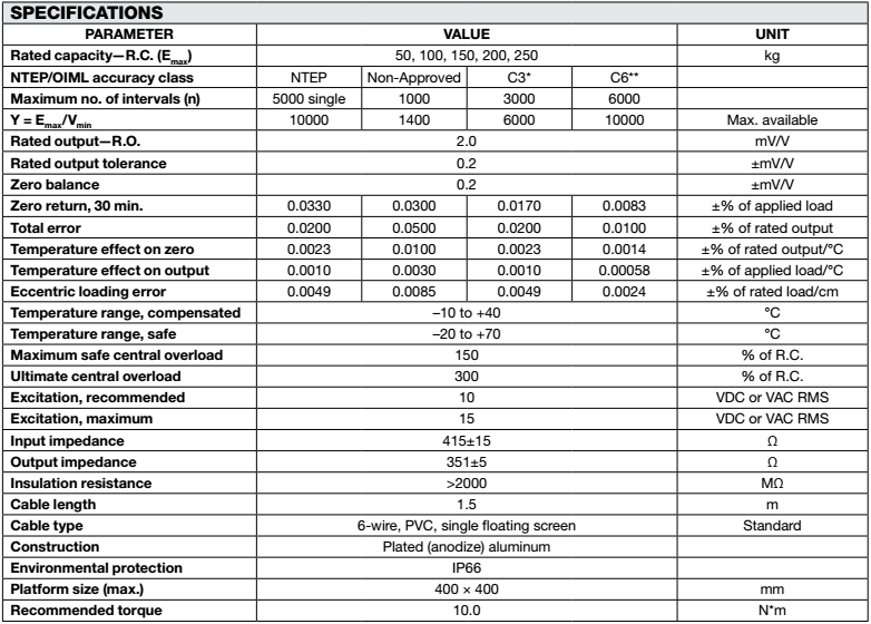 量程范圍:50,75,100,150,200,250 KG.