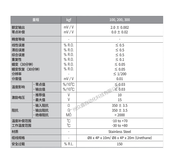 五、韓國凱士CAS品牌 HCS-300T-EXP稱重傳感器技術(shù)參數(shù)