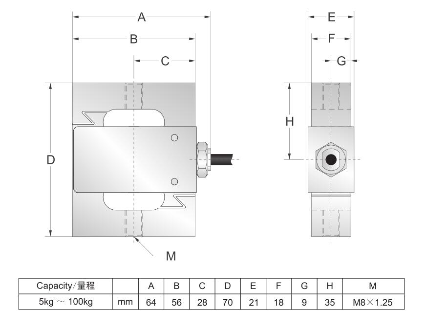 -量程可選:5kg, 7.5kg, 10kg, 15kg, 20kg, 30kg ,50kg, 75kg, 100kg