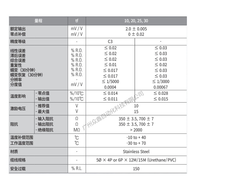 五、韓國(guó)凱士CAS品牌 WBKC-30T稱重傳感器技術(shù)參數(shù)