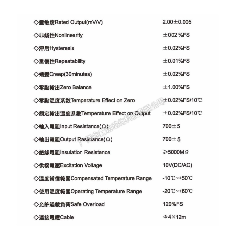 四、CP-15-10T稱重傳感器技術(shù)參數(shù)