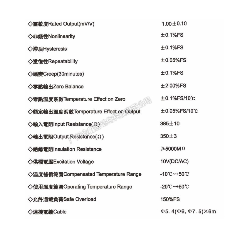 四、CW-500kg測力傳感器技術(shù)參數(shù)