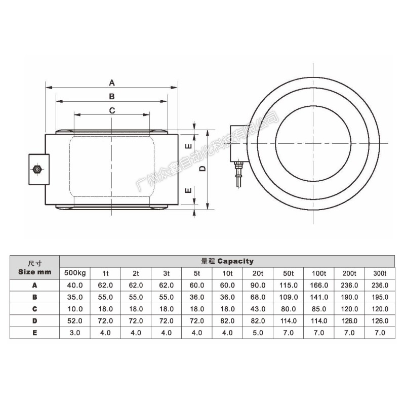 三、CW-500kg測力傳感器產(chǎn)品尺寸