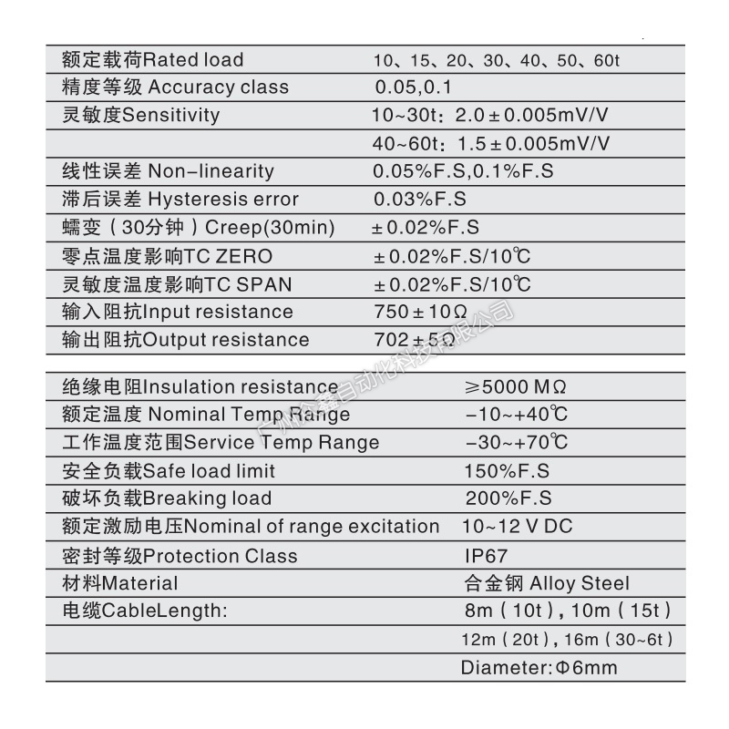 三、QSK-10T稱重傳感器產(chǎn)品參數(shù)