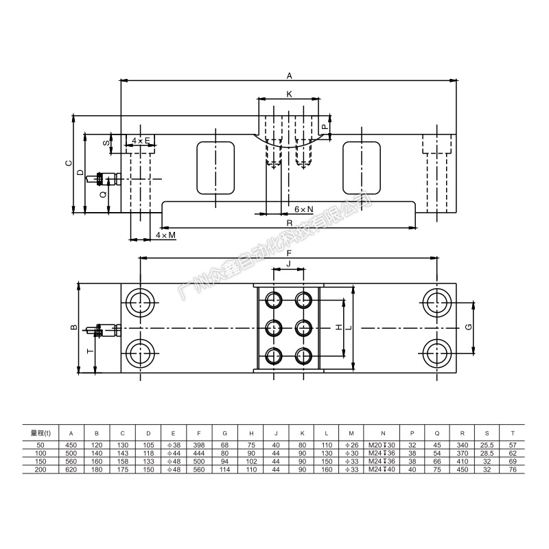 四、QSMC-H-50T稱重傳感器產品尺寸