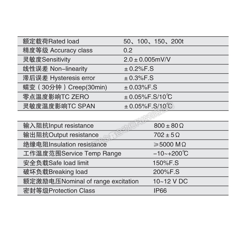 三、QSMC-H-50T稱重傳感器產品參數