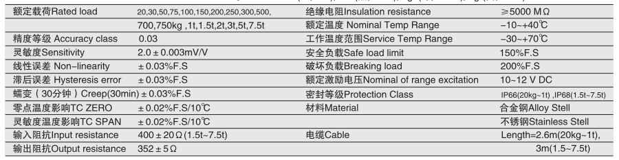 寧波柯力 1-PST系列技術(shù)數(shù)據(jù)