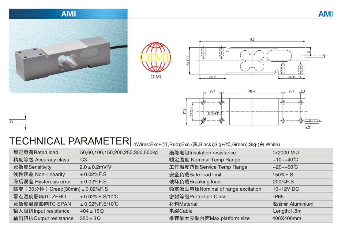 產品形狀:AMI傳感器的形狀有兩種,以量程區(qū)分,分別為5kg至40kg,50kg至500kg