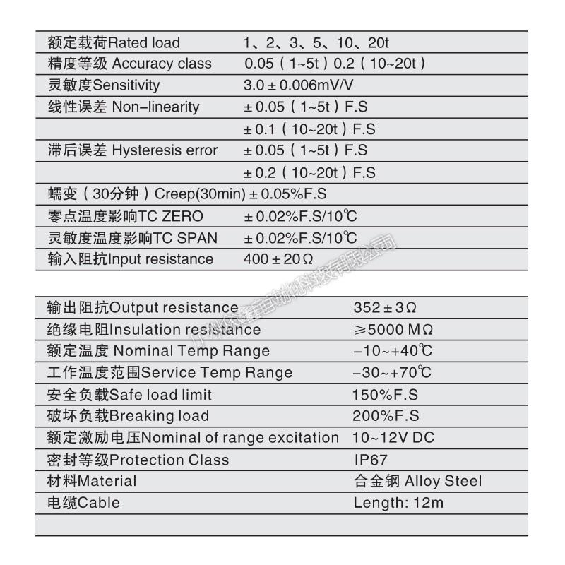 五、LFSC稱重傳感器技術(shù)參數(shù)