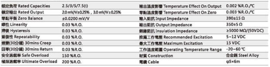 臺灣mavin稱重傳感器NB3系列產(chǎn)品參數(shù):