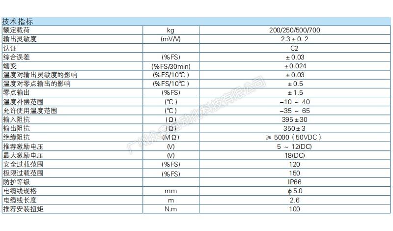五、ZEMIC品牌 L3V-C2-700kg-9B稱重傳感器技術參數