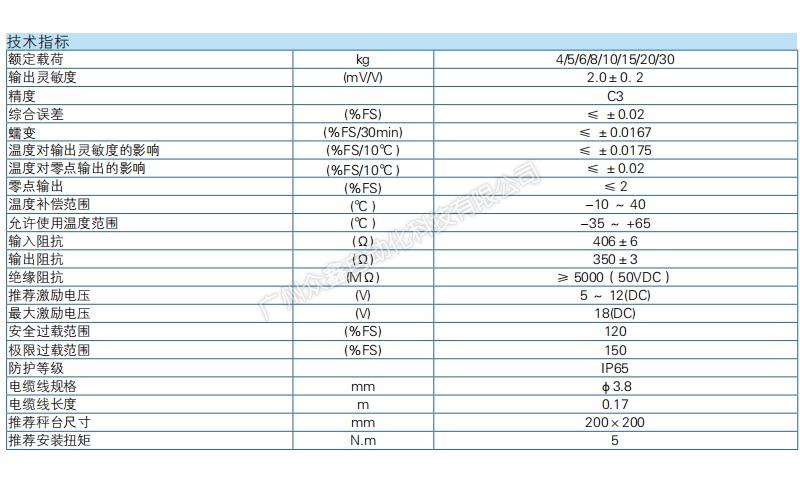 五、ZEMIC品牌 L6J-C3-30kg-0.45B稱重傳感器技術(shù)參數(shù)