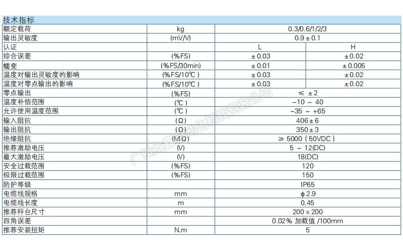 五、ZEMIC品牌 L6J1-C3-3kg-0.45B稱重傳感器技術參數(shù)