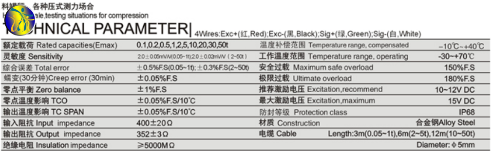 SUNCELLS YBSC-A系列稱重傳感器技術(shù)參數(shù)