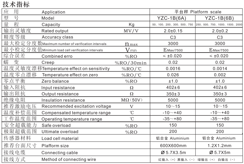 YZC-6A-50kg, YZC-6A-100kg, YZC-6A-200kg, YZC-6A-300kg, YZC-6A-500kg, YZC-6A-750kg,