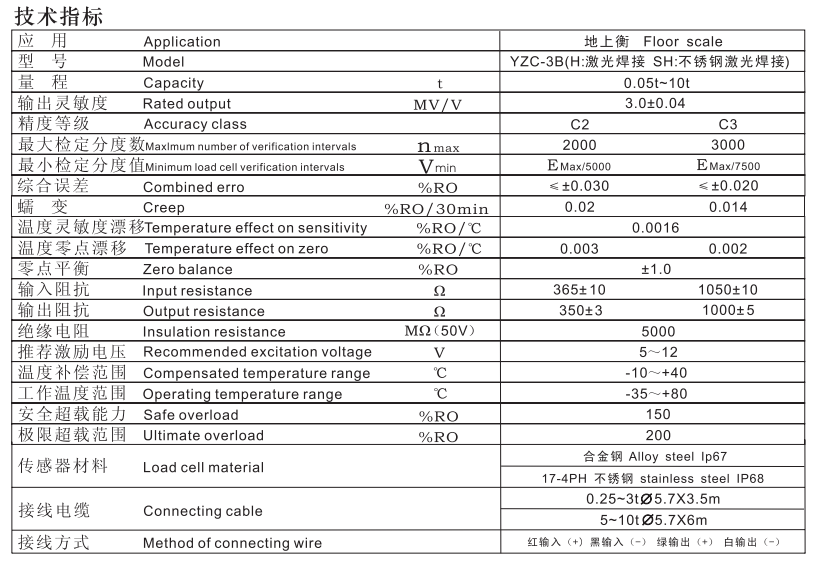 廣州電測傳感器YZC-320系列產(chǎn)品參數(shù):