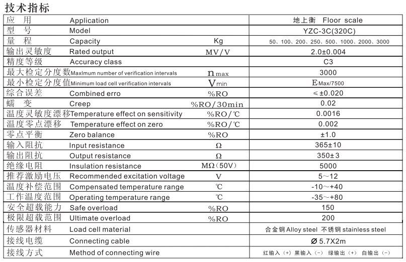 YZC-320C-50kg, YZC-320C-100kg, YZC-320C-200kg, YZC-320C-250kg, YZC-320C-500kg, YZC-320C-1000kg,YZC-320C-2000kg, YZC-320C-3000kg