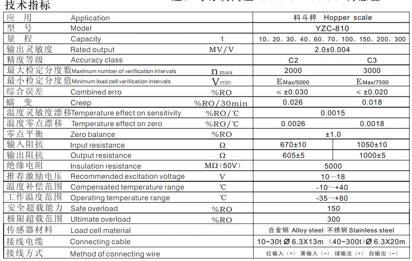 廣州電測(cè)傳感器YZC-810系列產(chǎn)品參數(shù):