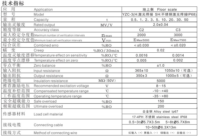 廣州電測傳感器YZC-3系列產(chǎn)品參數(shù):