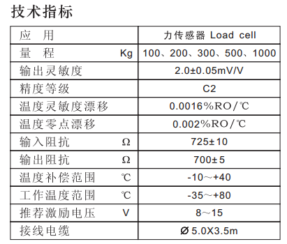 廣州電測傳感器YZC-215B系列產(chǎn)品參數(shù):