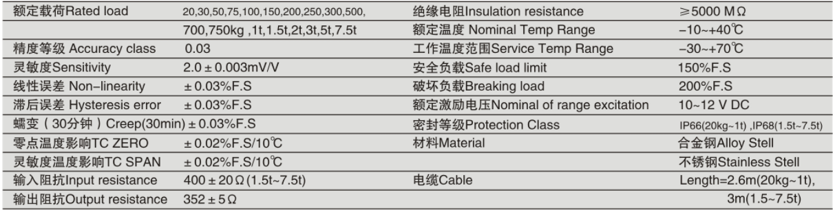 ★量程可選:20kg,30kg,50kg,75kg,100kg,150kg,200kg,250kg,300kg,500kg,700kg,750kg;1t,1.5t,2t,3t,5t,7.5t。