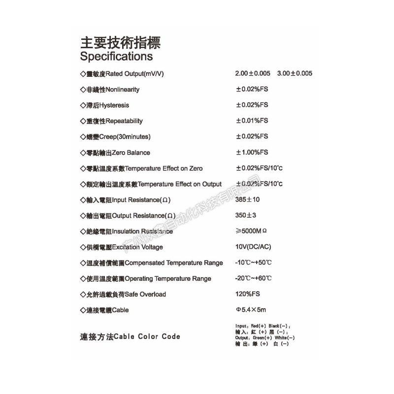 四、MS-1稱重傳感器技術(shù)參數(shù)