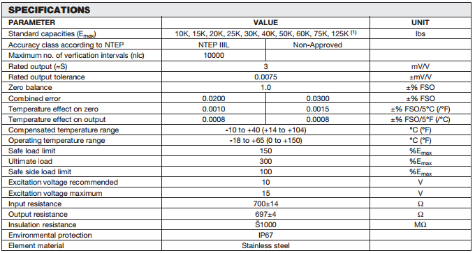 美國Vishay Revere稱重傳感器9303系列產(chǎn)品參數(shù):