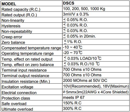稱重傳感器相關(guān)型號: DSCS-100kg,DSCS-200kg,DSCS-500kg,DSCS-1000kg