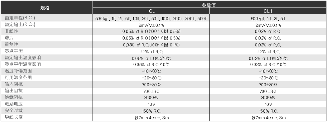 CL稱重傳感器技術(shù)指標(biāo)