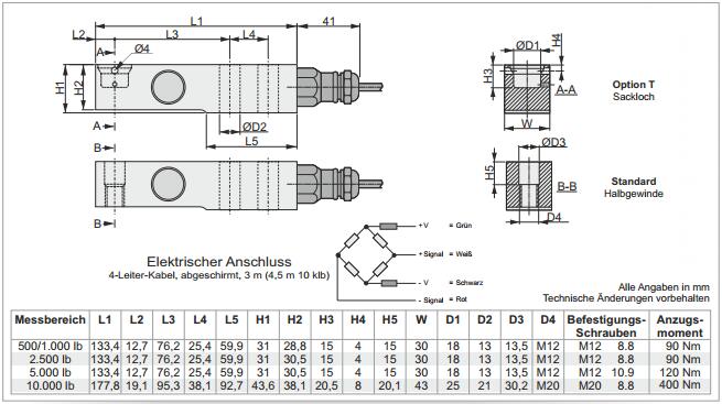 量程:500lb,1klb,2.5klb,5klb,10klb