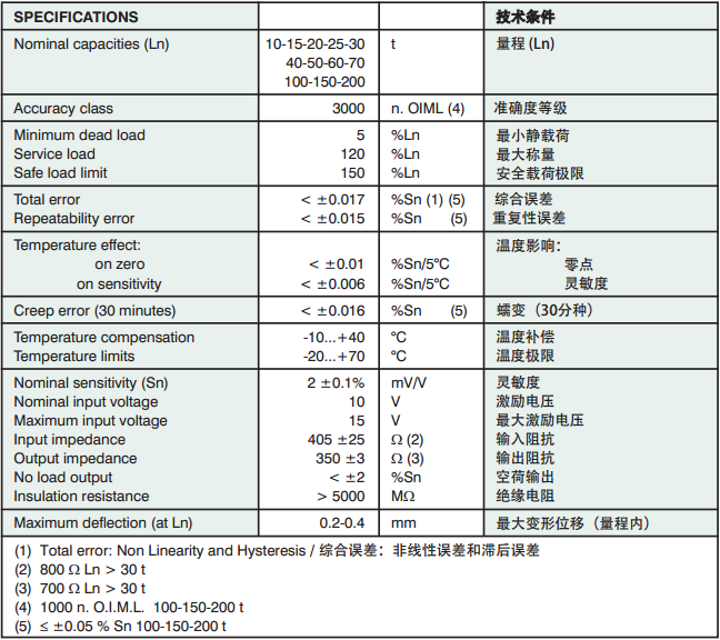 MOD700稱(chēng)重傳感器技術(shù)指標(biāo)