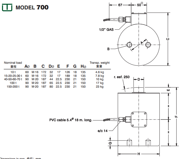 【MOD700傳感器】MOD700-10t~MOD700-200t_西班牙UTILCELL稱(chēng)重傳感器