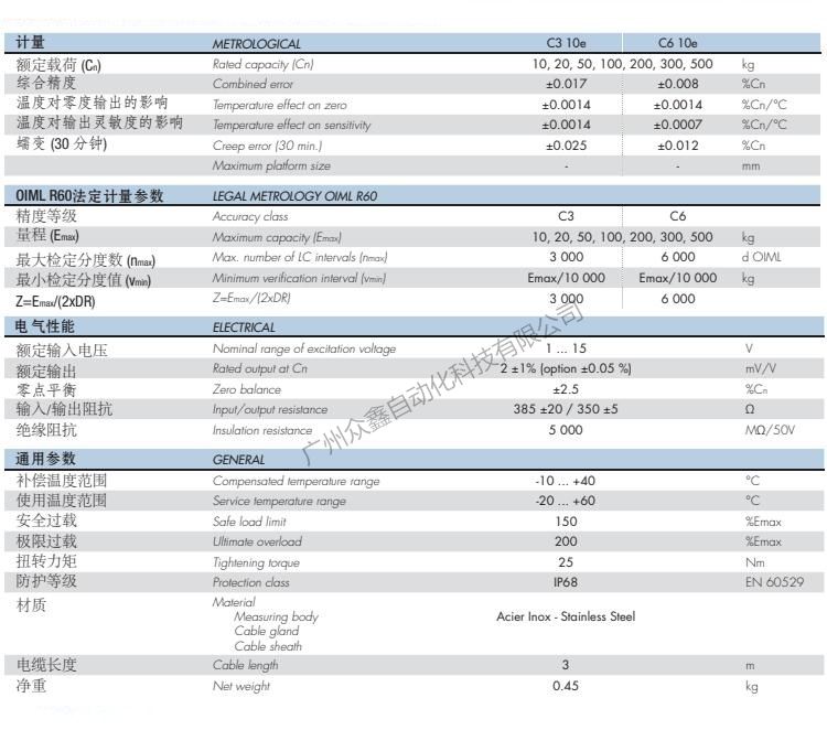 五、法國世感Scaime品牌 F60X稱重傳感器技術參數(shù)