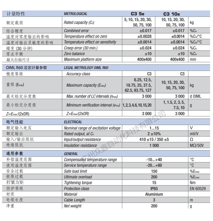 五、法國(guó)世感Scaime品牌 AG稱重傳感器技術(shù)參數(shù)