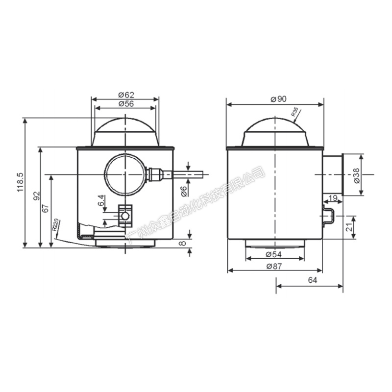 五、德國(guó)茵泰科 PR6224稱重傳感器產(chǎn)品尺寸