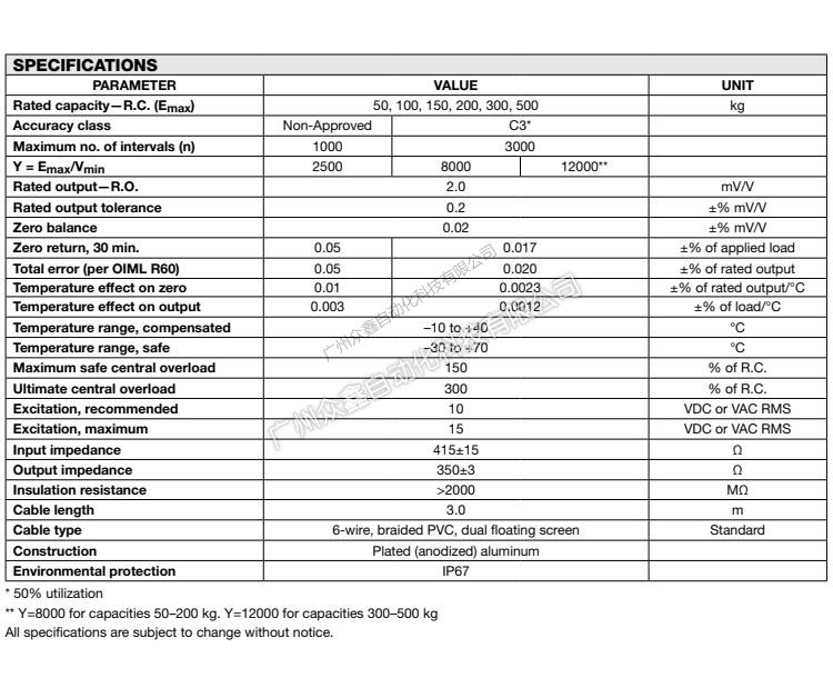 五、美國特迪亞 614稱重傳感器產(chǎn)品技術參數(shù)
