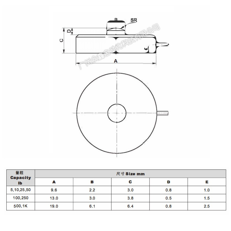 三、MIN-5lb微型測力傳感器產(chǎn)品尺寸